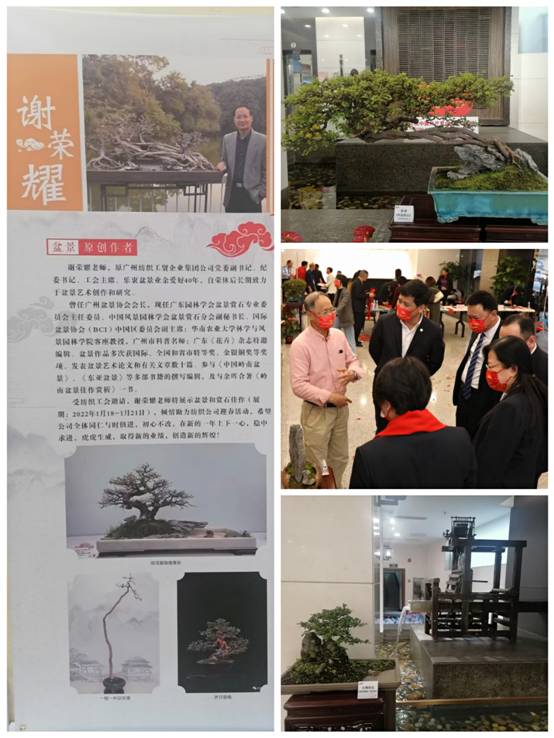 盆景是以植物和山石为基本材料在盆内表现自然景观的艺术品。为激励广大员工“稳中求进”稳健迈步“十四五”,原华体会平台公司党委副书记、纪委书记、工会主席谢荣耀老师(现任广东园林学会盆景赏石专业委员会主任委员)受邀公益展示了原创的《不忘初心》、《根深基稳一往无前》、“咬定青山”等10个盆景灵石佳作,一枝一叶,一盆一景,妙趣横生,寓意深刻,励志鼓舞,吸引广大员工驻足鉴赏。