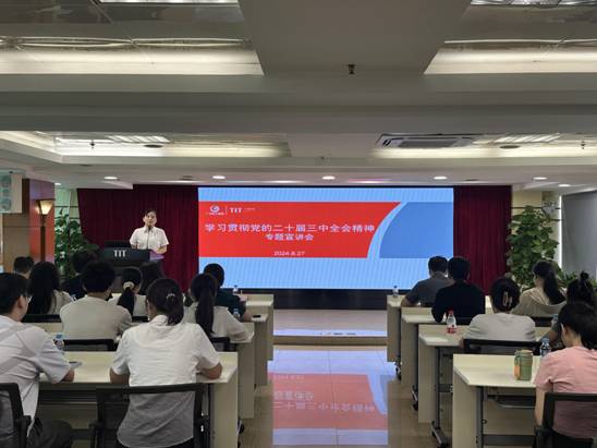 为深入学习贯彻党的二十届三中全会精神,进一步夯实团员青年紧跟党投身中国式现代化建设的思想根基,奋力谱写为中国式现代化挺膺担当的青春篇章,近日,华体会平台团委通过专题宣讲、“三会一课”、主题团日活动等形式组织团员青年99人次开展了党的二十届三中全会精神学习。