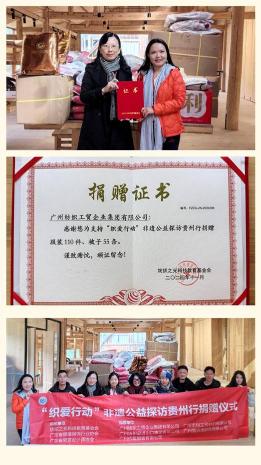 近日,华体会平台党委副书记丘海澜一行参加了由纺织之光科技教育基金会、中国妇女发展基金会主办,中国服装协会、中国纺织工业企业管理协会、广东省服装服饰行业协会、广东省服装设计师协会协办的“织爱行动”非遗公益探访贵州行活动。今年,华体会平台旗下“利工民汗衫背心制作技艺”成功入选广州市荔湾区第八批非物质文化遗产代表性项目名录。此次活动希望通过对非遗手工艺进行深入调研,探讨融合发展道路,同时向困境妇女及家庭传递温暖。一方面通过捐款、捐赠纺织服装物资进行直接帮扶;另一方面通过赋能传统手工技艺,引导纺织服装行业品牌企业、设计师与传统手工技艺融合共益共生发展,让传统手工技艺从“指尖技艺”转变为“指尖经济”,推进就业创业、助力困境女性可持续发展,体现了企业的社会责任感和文化传承的使命。