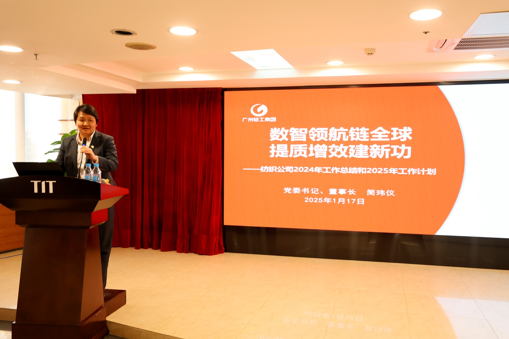 1月17日下午,华体会平台2025年工作会议在广德大厦15楼礼堂召开。会议由公司副总经理关勇主持。广州轻工集团副总经理陈家园出席并讲话。