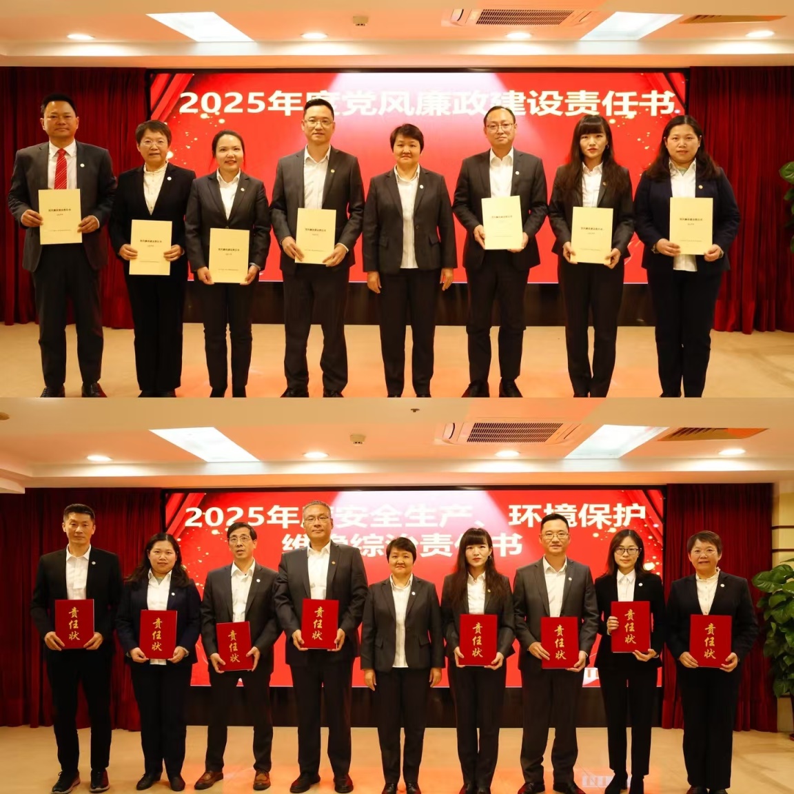 各属下企业向华体会平台主要领导递交2025年度党风廉政建设、安全生产、环境保护、维稳综治等目标管理责任书。