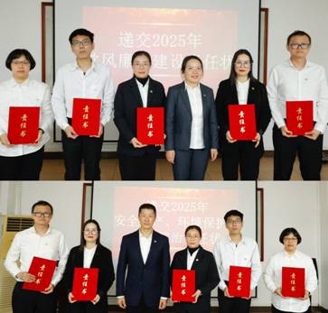 各部门向公司主要领导递交2025年度党风廉政建设、安全生产、环境保护、维稳综治等目标管理责任书。