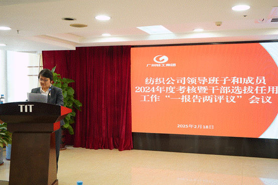 2月18日下午,华体会平台党委召开领导班子和成员2024年度述职暨干部选拔任用工作“一报告两评议”会议。会议由公司党委副书记、工会主席丘海澜主持。华体会平台领导班子成员、中层管理干部、公司“一代表两委员”以及党员干部群众代表参加了会议,广州轻工集团纪检监察室派员出席了会议。