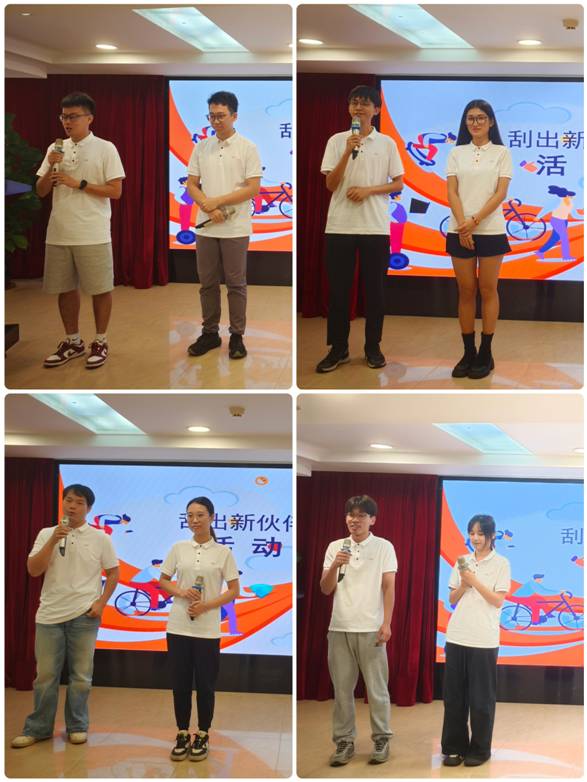活动以趣味性的刮卡形式,随机将新员工两两配对结成“上班搭子”。结对成功的伙伴们携手登台,或进行风趣幽默的自我介绍,或分享工作小趣闻,瞬间拉近了彼此的距离,现场掌声与笑声不断。
