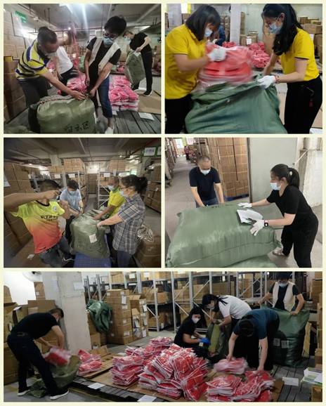 4月11日上午11时许,当华体会平台收到广州轻工集团要求定制5万件印有“我是共产党员”字样的志愿红马甲任务后,公司党委高度重视,第一时间指导利工民组建党员团员突击队和生产专班,制订详细工作计划及分工。一周内出这么大批的货是一个不小的挑战,而且马甲货源还分散在广州、佛山及浙江一些城市的仓库中。如何才能以最快速度调集货源、如何根据需求安排好每日出货量、如何精准配送到每条街道……这些现实的问题都摆在了工作专班面前。面对这些问题,利工民总经理郑力强迅速理清思路、靠前指挥,一边率领工作专班与上级部门、供应商保持密切联系,对接好各个工作环节;一边积极做好内部人员调配工作,确保高效完成出货任务。