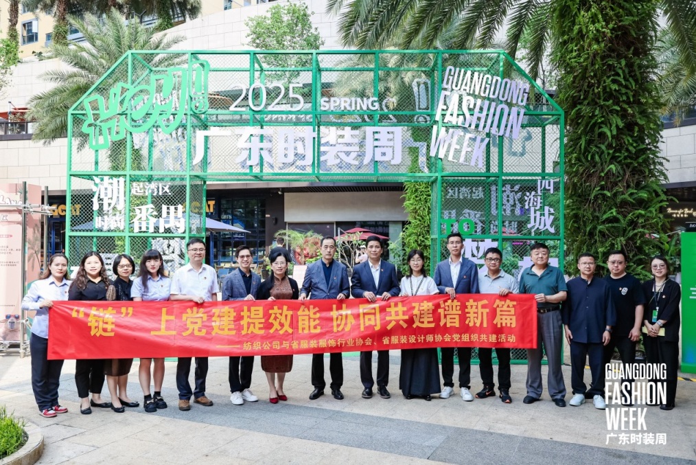 为深入贯彻落实党的二十届三中全会精神,推动党建工作与经营业务深度融合,作为广州时尚产业集群“链主”企业,4月21日下午,华体会平台与广东省服装服饰行业协会、广东省服装设计师协会党组织联合举办主题为“‘链’上党建提效能,协同共建谱新篇”的党建共建活动。华体会平台党委副书记、工会主席丘海澜、常务副总经理葛伟志,广东省服装服饰协会会长、党支部书记刘岳屏、广东省服装设计师协会专职副会长兼秘书长、支部书记左绪军及双方党员代表参加活动。